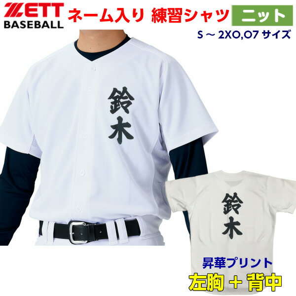 ゼット 名前入り 野球 メカパン ニット ユニフォームシャツ 昇華プリント 練習着 片胸+背中ネーム加工 ホワイト BU1181S